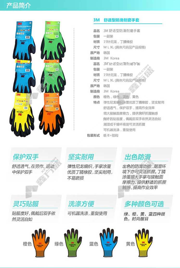 3M comfortable non-slip and wear-resistant gloves WX300923975 L/gray green WX300923975/L/gray green