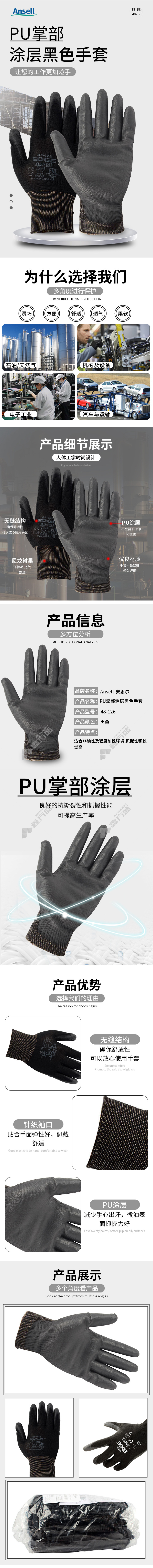 ansell Ansell polyester PU palm coatingblackgloves48126070 7code black 48126060/6code /black