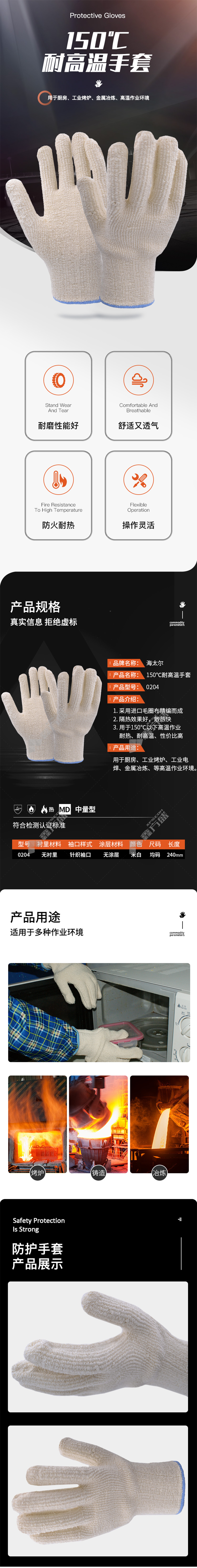 haitail 150 degree high temperature resistant gloves 0204, one size white, no specifications