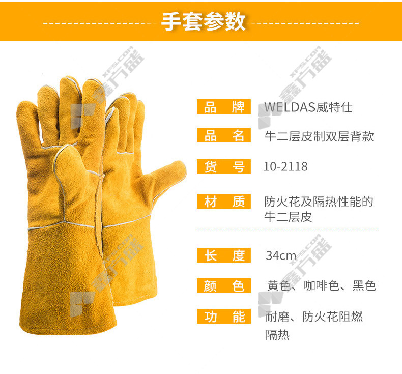 wits fireproof and wear-resistant conventional welding gloves 10-2118 cow two-layer double back leather style XL zun yellow 10-2118 cow two-layer double back leather model /L/zun yellow