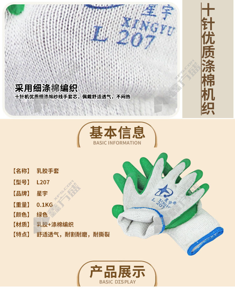 xingyu wrinkle gloves L207-7 one size fits all white gauze green no specifications