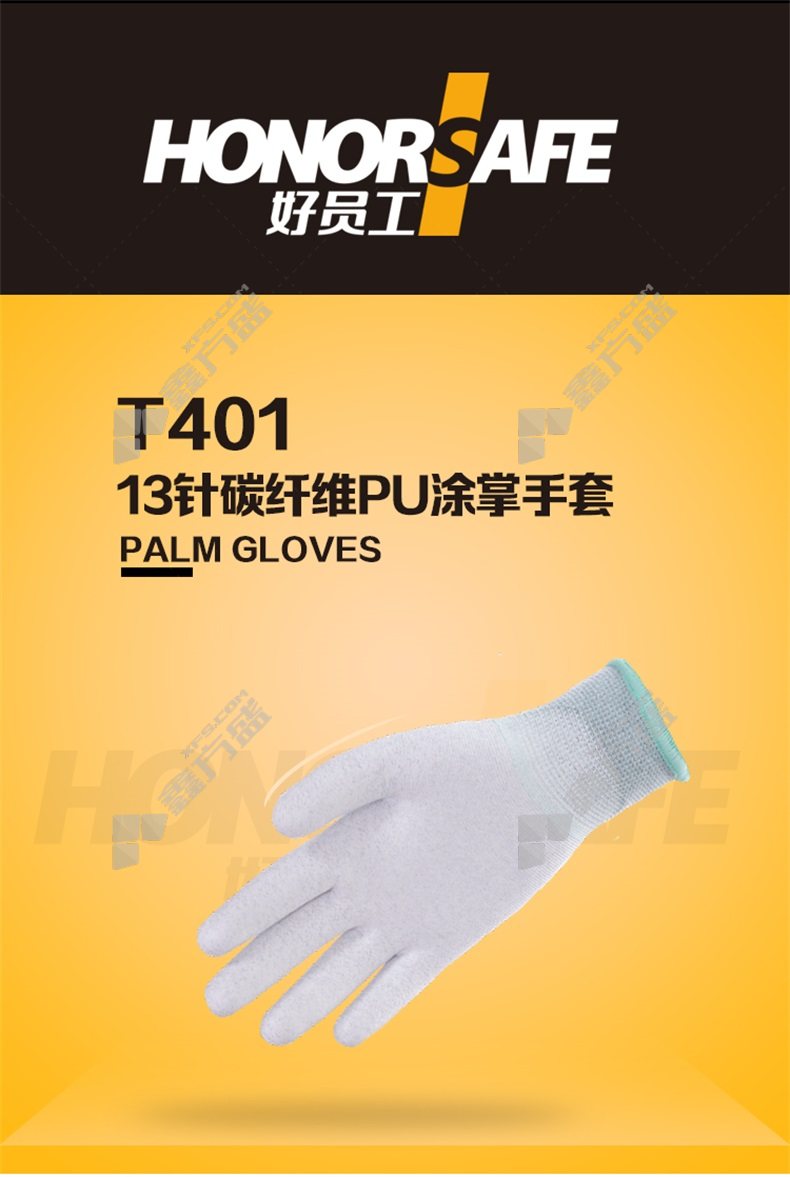 good staff 13-gun carbon fiber PU coated gloves T401 L T401/S