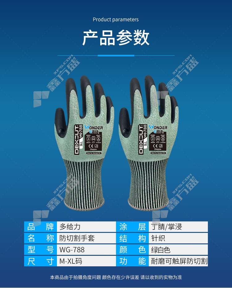 duogeili tiger mouth reinforced touch screen anti-cutting work gloves WG-788 7/S green and white WG-788/7/S/green and white