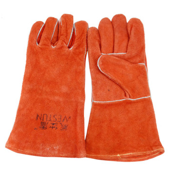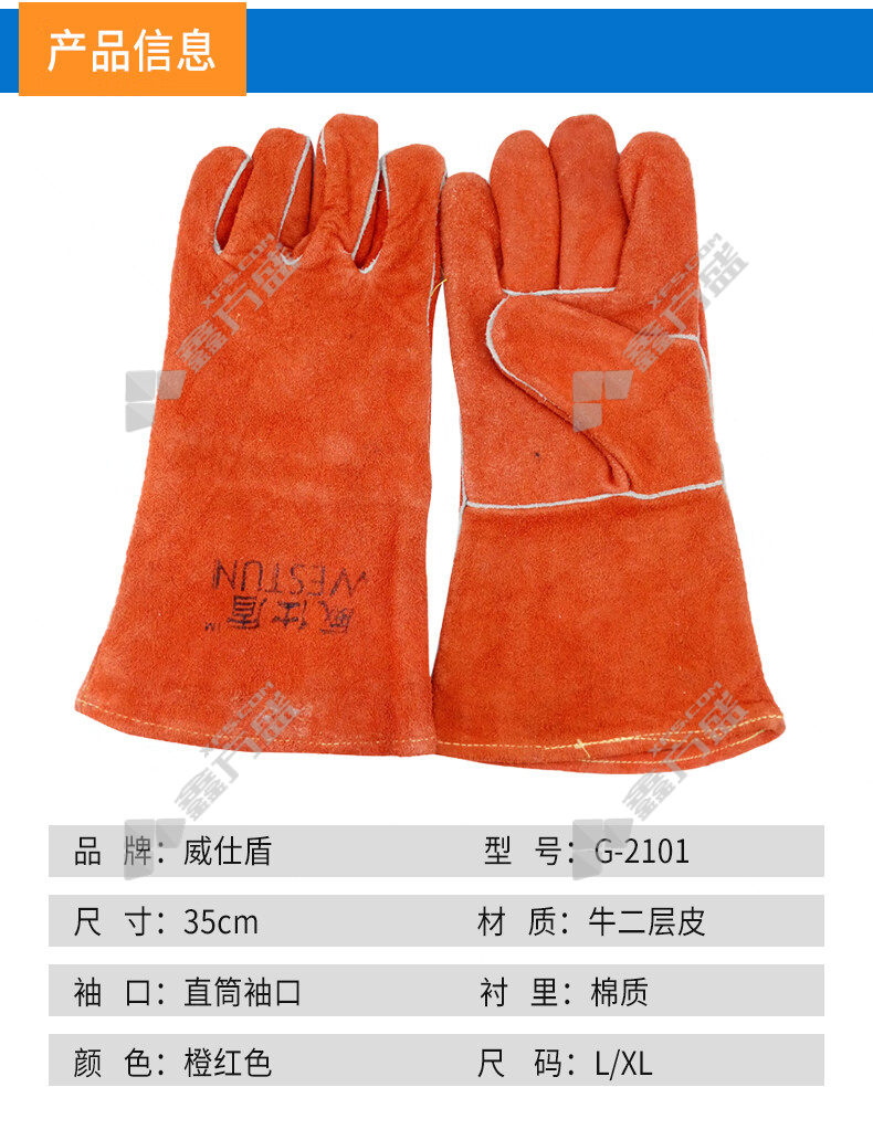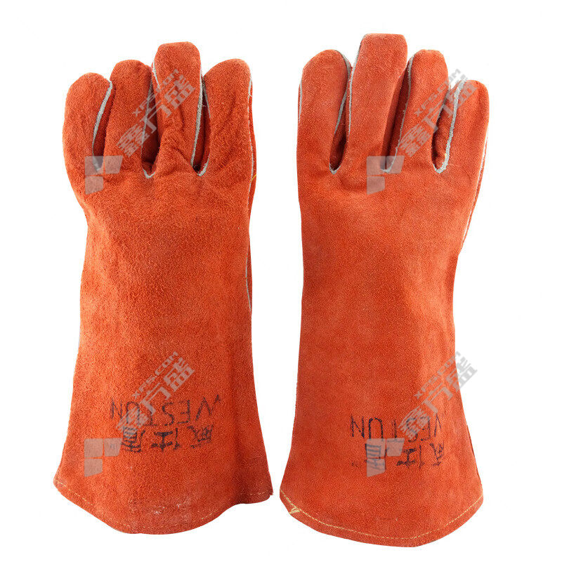 wei shi dun cow two-layer leather welding gloves G-2101 35CM L orange red G-2101 35CM/L/orange red