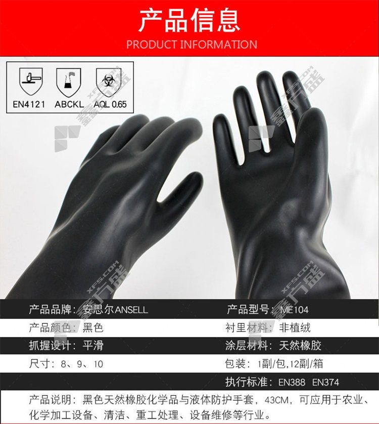 ansell ME104 rubber chemical resistant gloves 87-104 black natural rubber no specifications