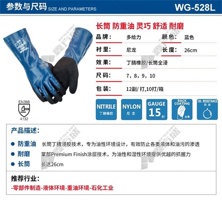 more awesome WG-528L 30cm long oil-proof work gloves WG-528L L pewter graynitrile WG-528L/M/pewter gray /nitrile