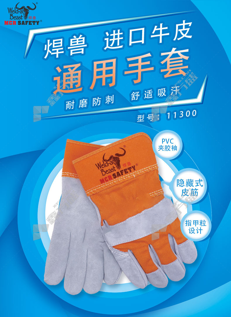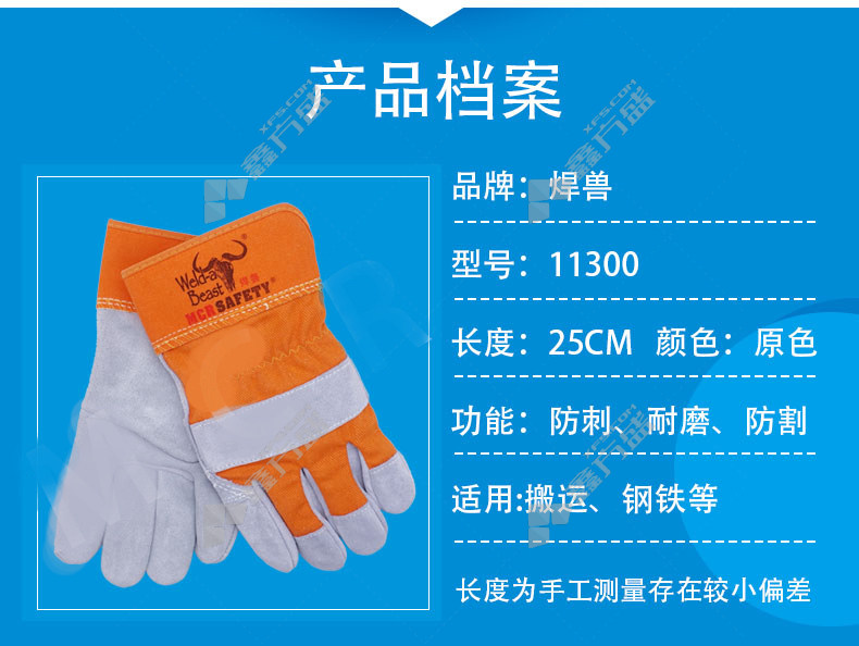 welding beast 11300 short leather gloves 25 CM cow two-layer primary color neck hide no specifications
