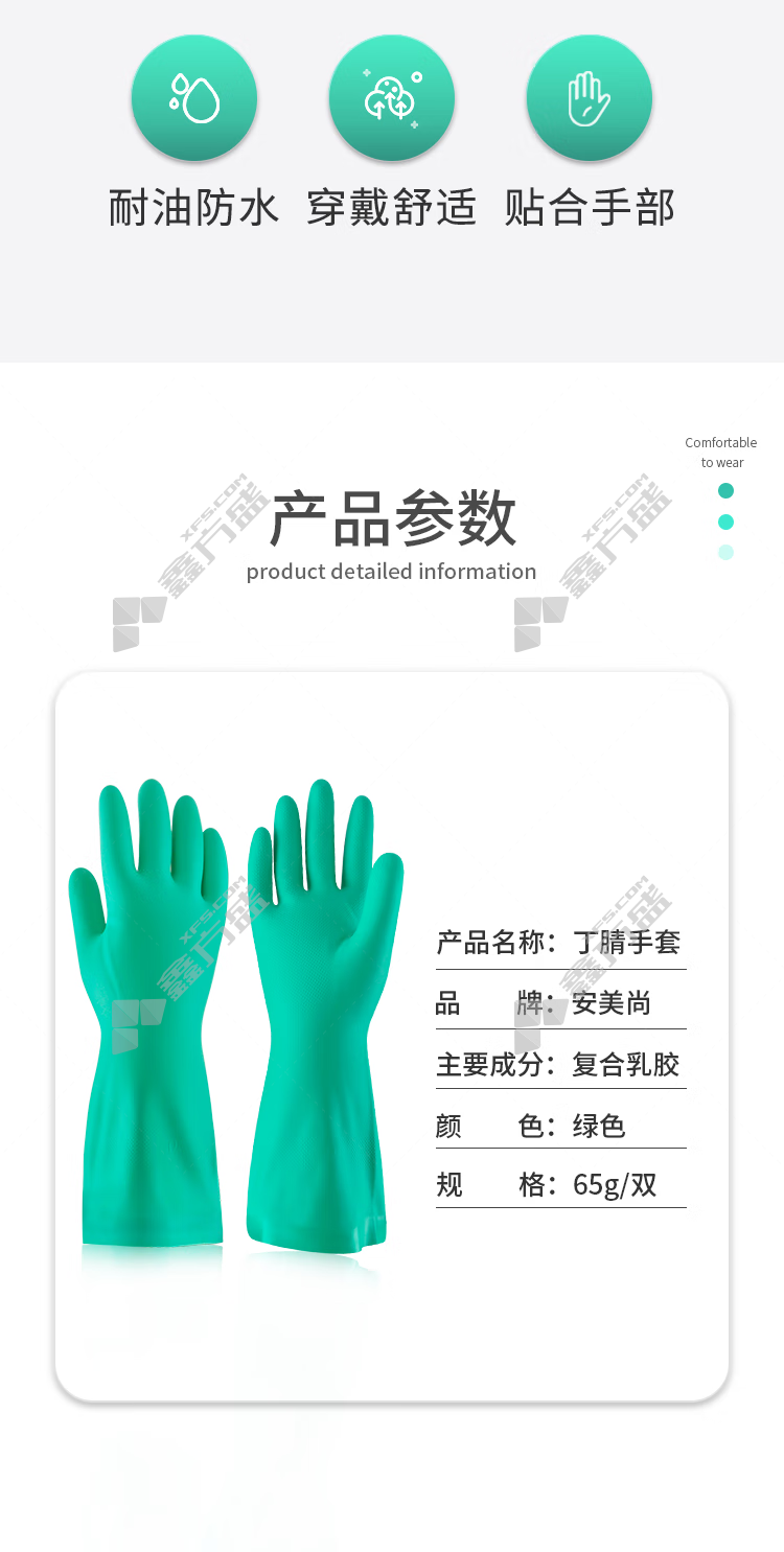 ameishang oil-resistant, acid-alkali-resistant and waterproof nitrile gloves A536 9 no. green no specification