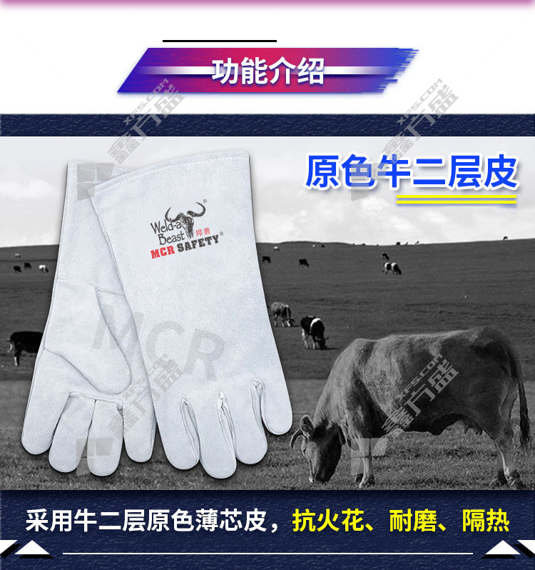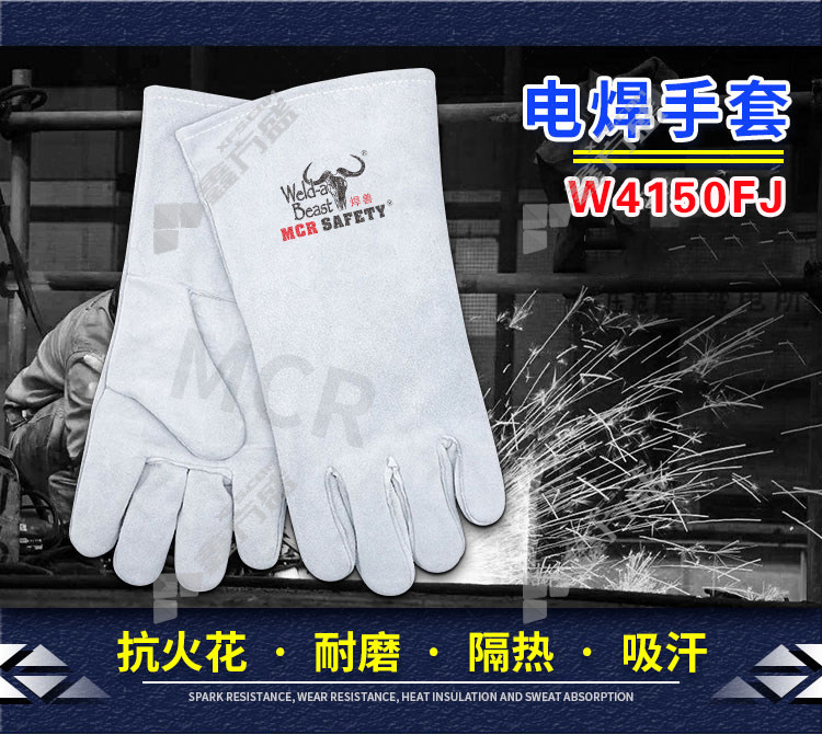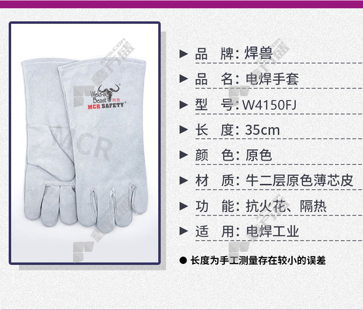 welding beast W4150FJ welding gloves 35 CM beef two-layer raw color thin core skin no specifications