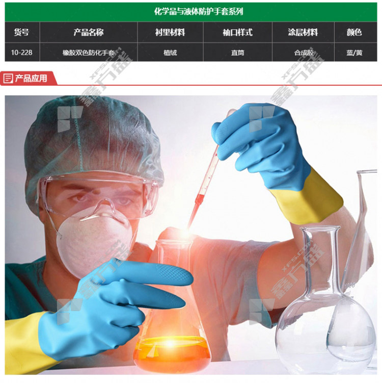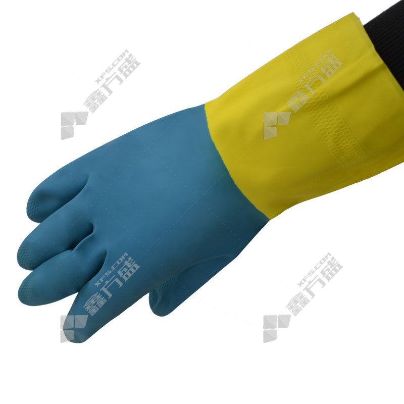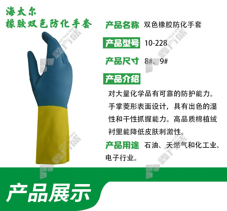 hai taier 10-228 chemical defenserubberflocked lined two-tone gloves 10-228 9code blue /yellow rubber 10-228/8code /blue /yellow /rubber