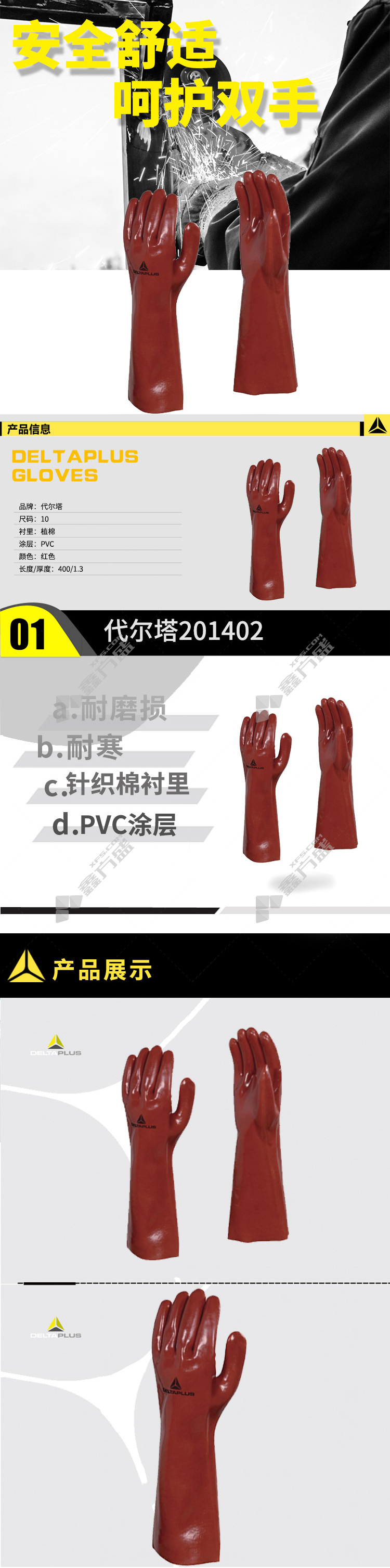 delta 201402 comfort edition PVC chemical resistant gloves 201402 size 10 red PVC(pvc ) no specifications