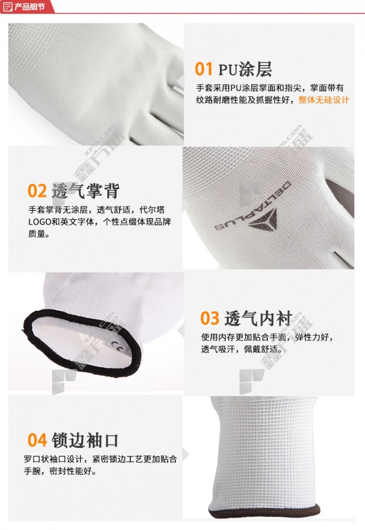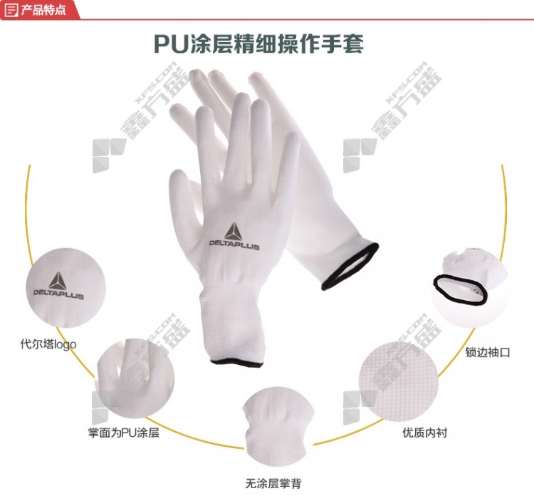 delta PU coated nylon knitted gloves 201702 9code white 201702/7code /white