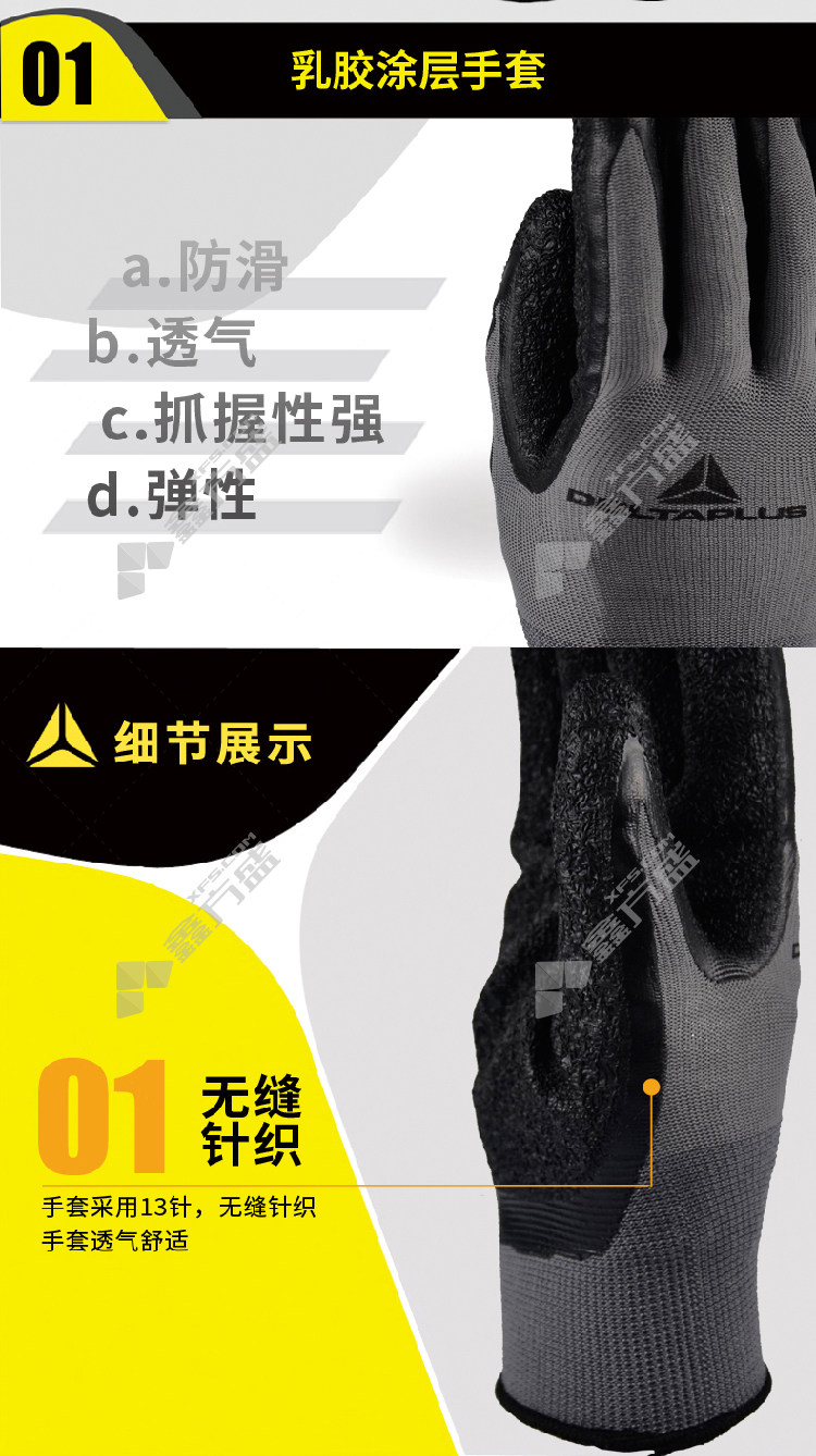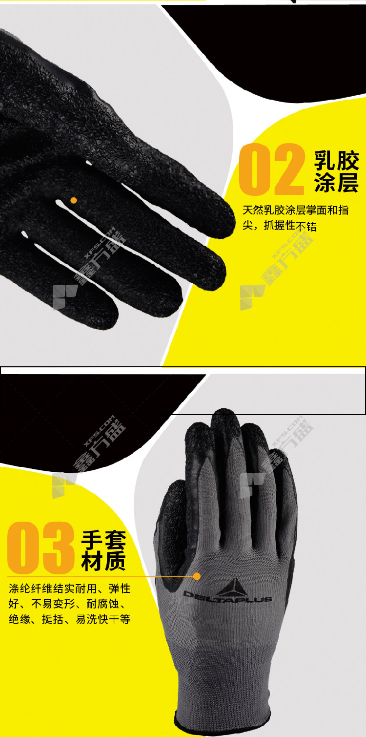 delta 201630 polyester fiber latex coated gloves black 201630 9# black 201630/7#/black