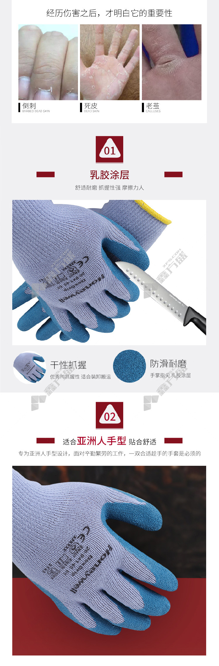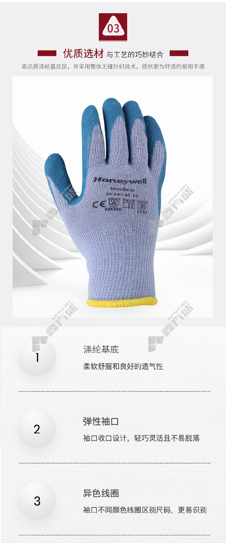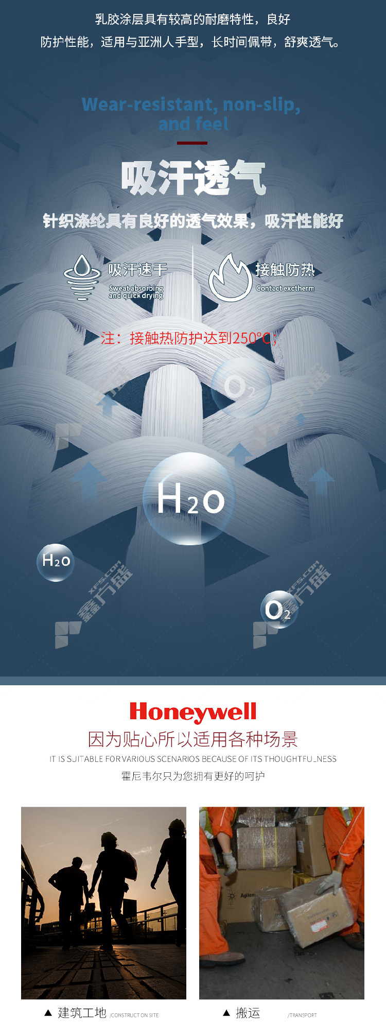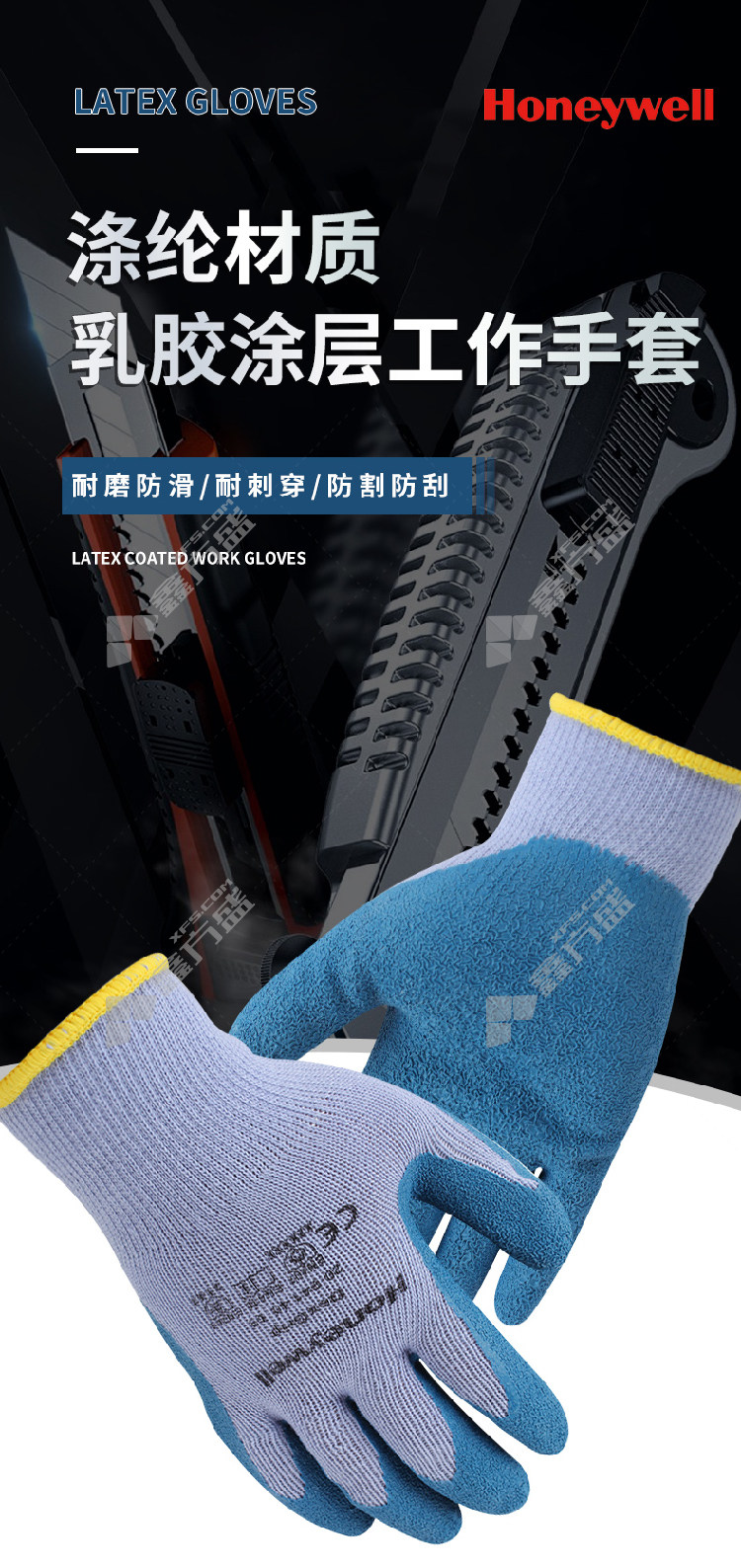 honeywell Honeywell natural latex coated gloves 2094140 CN 8 code level 2 wear resistance and level 1 cut resistancegray blue 2094140CN/8code level 2 wear resistance and level 1 cut resistance /gray blue