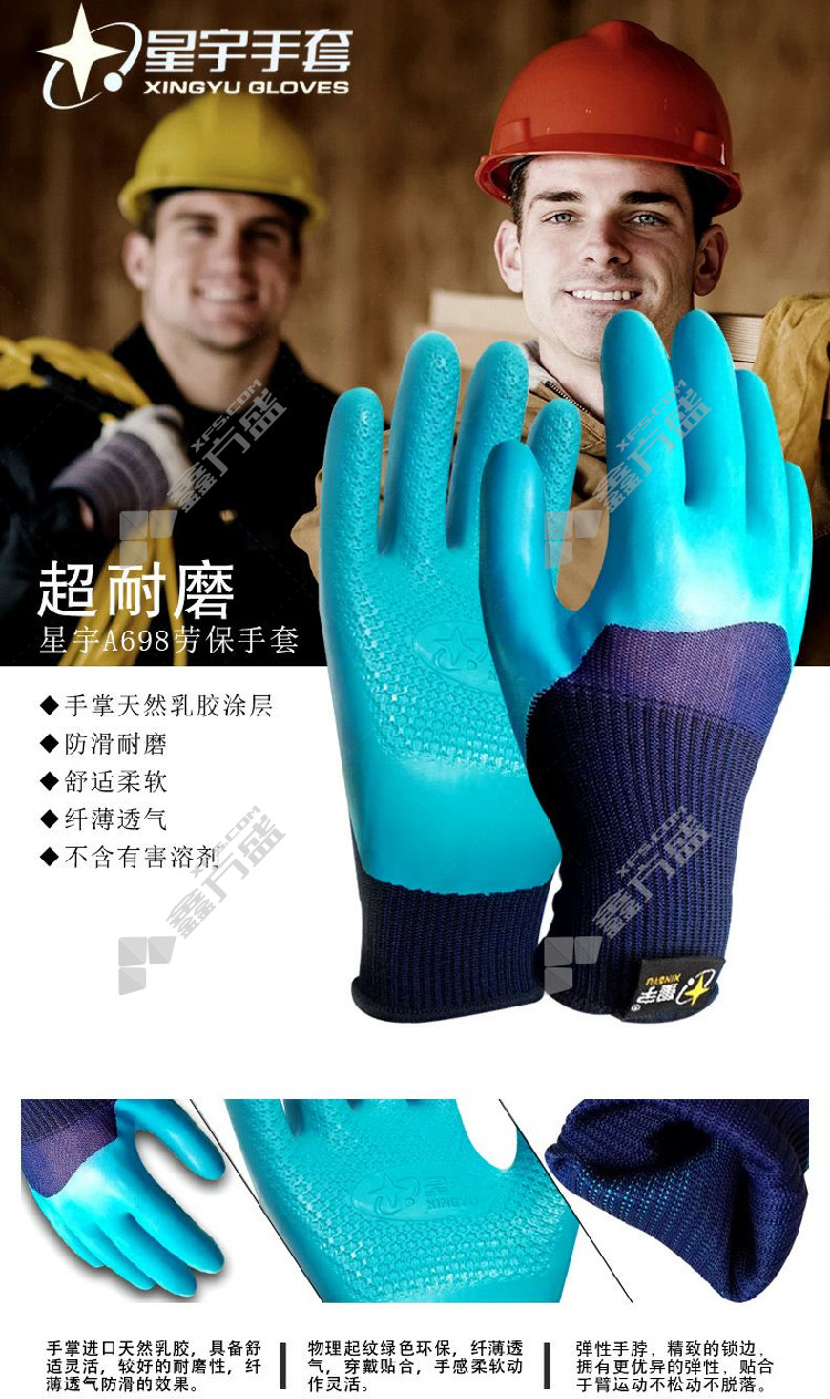 xingyu XINGYU tibetan blue polyester tibetan orchid excellent durable semi-immersed gloves A698 no specifications