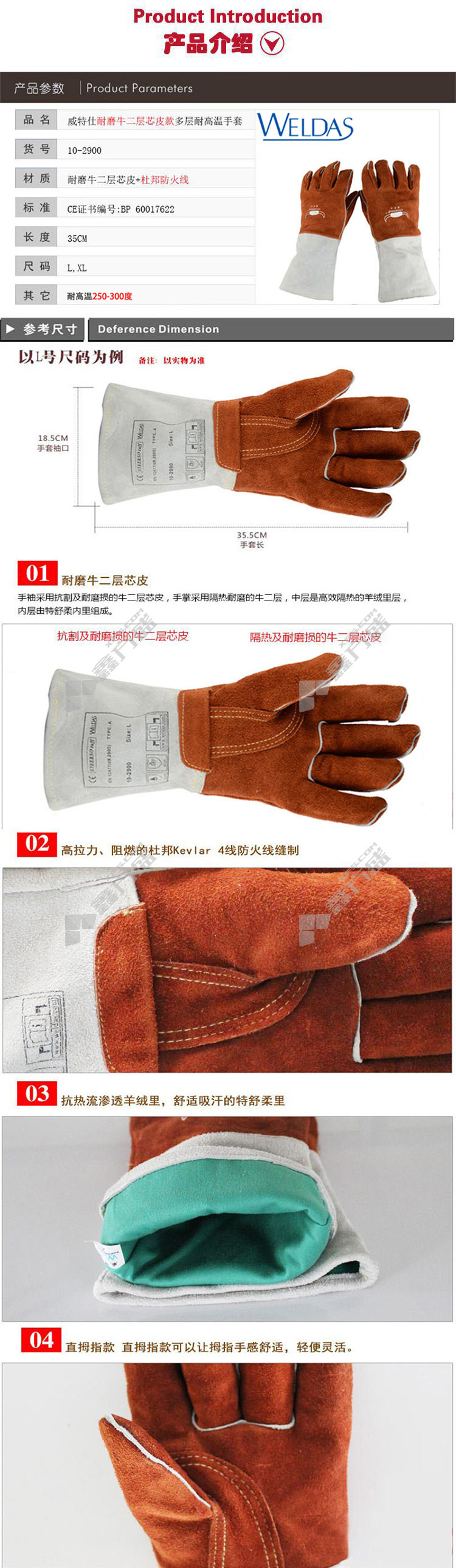 wits high temperature resistant welding gloves 10-2900 10-2900 manniu king brown L 10-2900 manniu king brown /L