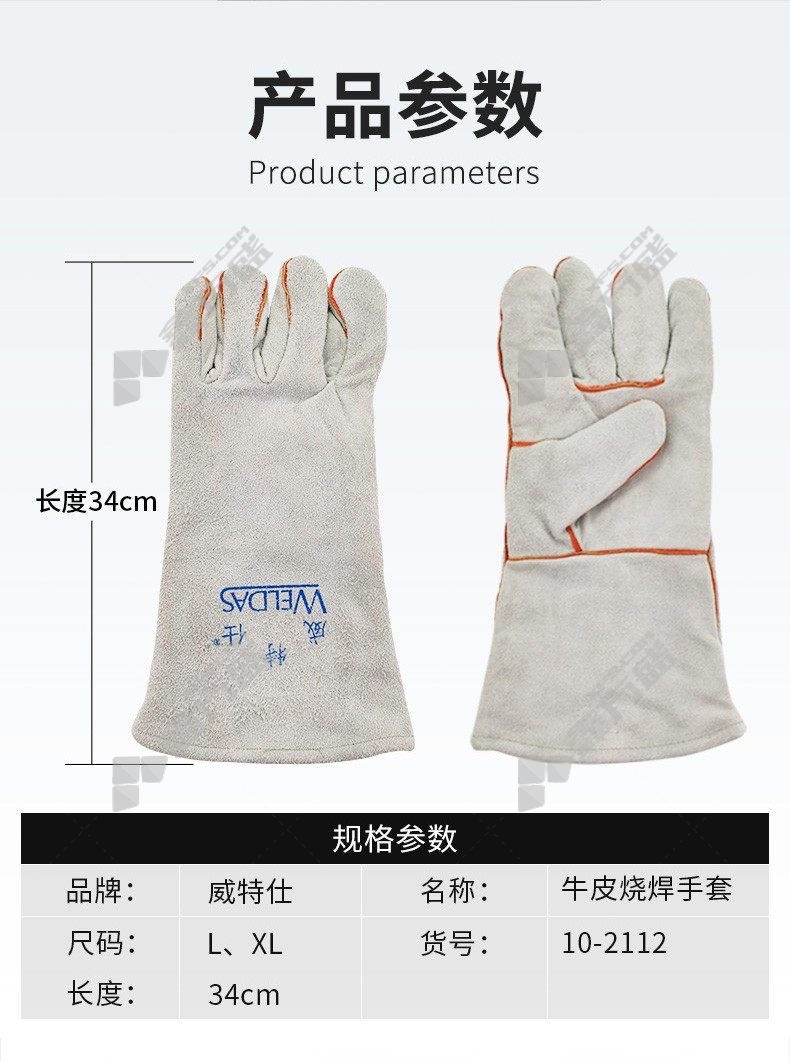 wits fireproof and wear-resistant conventional welding gloves 10-2112 10-2112 XL 34cm grey 10-2112/18/XL code /46cm/grey