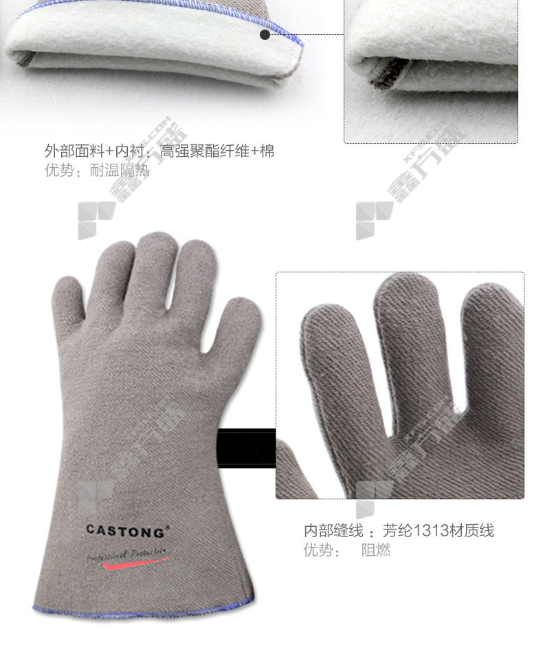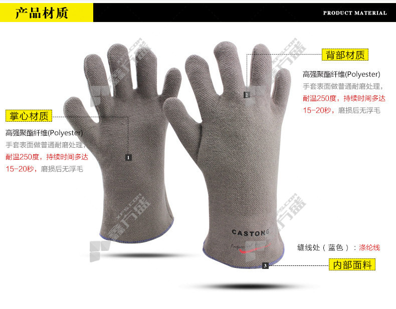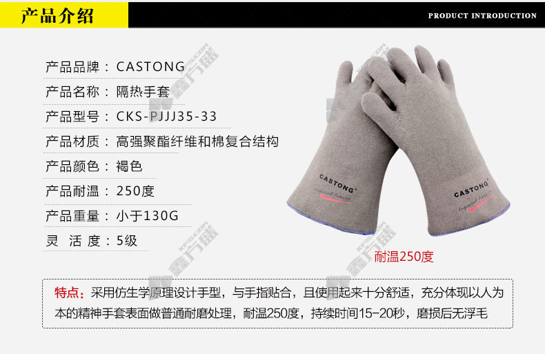 caston 200 degree high temperature resistant thermal insulation thickened five-finger flexible gloves brown PJJJ35-33 one size fits all, no specifications