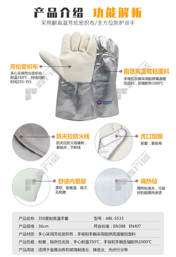 amberley dust-free heat insulation anti-scalding 350 degree high temperature resistant gloves ABL-S533 one size fits all 350 degrees 36 CM no specifications