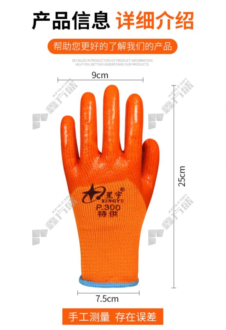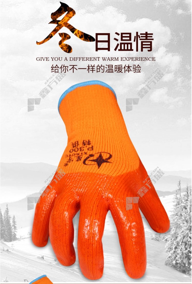xingyu plus fleece thickened wear-resistant work terry warm foam PVC cold-proof gloves P300 L code orange red no specification