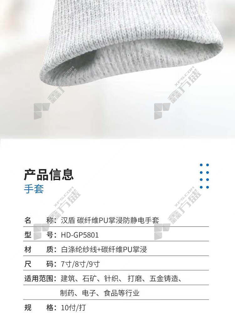 handun carbon fiber PU palm dipped anti-static gloves HD-GP5801 9inch 23.5cm white HD-GP5801/7inch /21.5cm/white