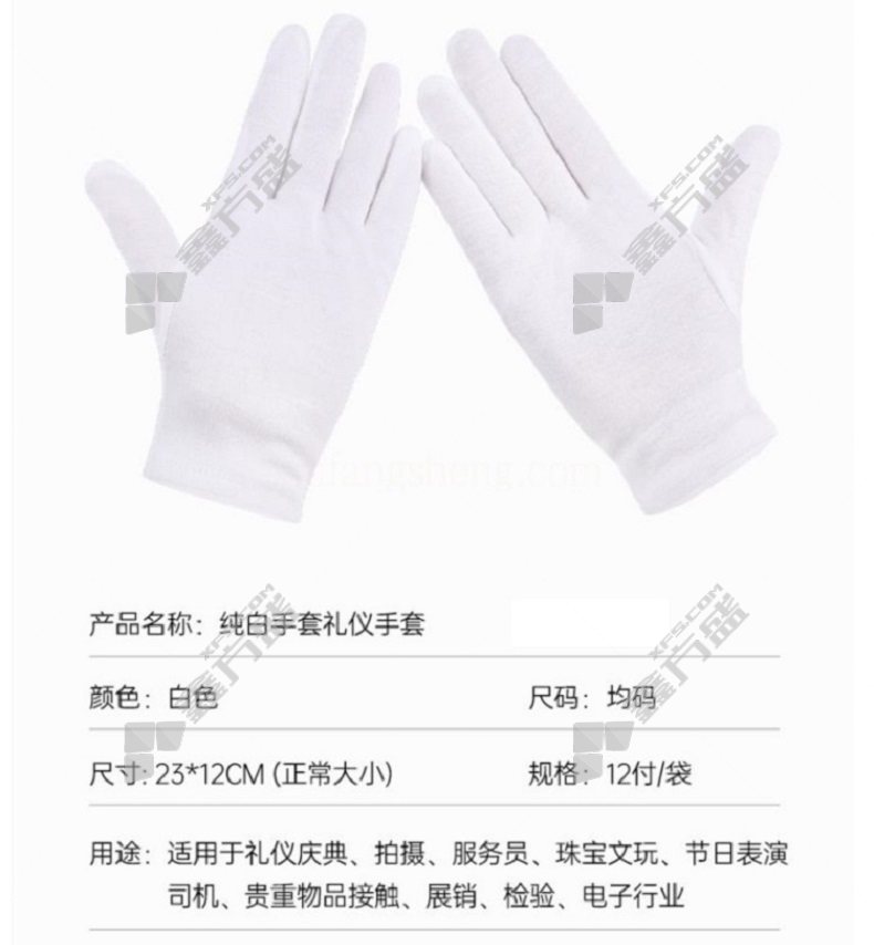 wangxing fine yarn ceremonial white gloves (order in multiples of 1200) handmade B21 no specifications