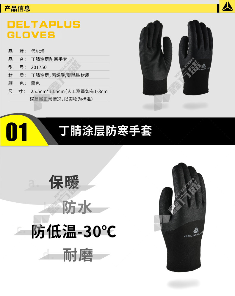 delta nitrile foam coated cold protection gloves 201750 10code black 201750/9code /black