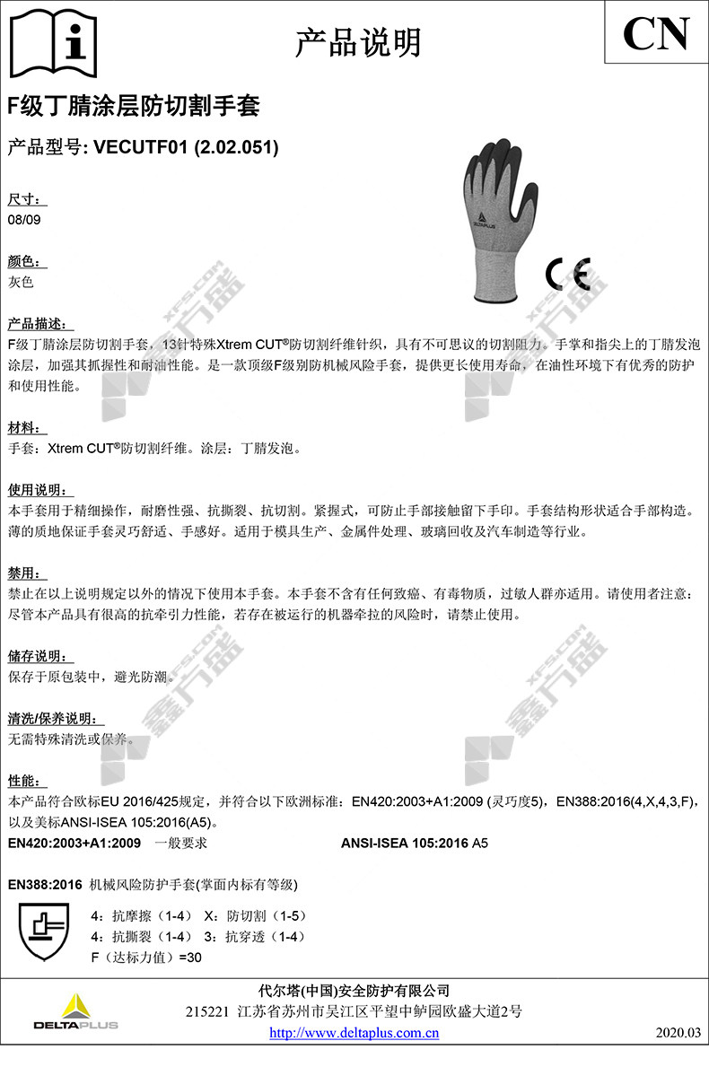 delta202051 F grade nitrile coated cut resistant glovesgrey 202051 9# grey 202051/8#/grey