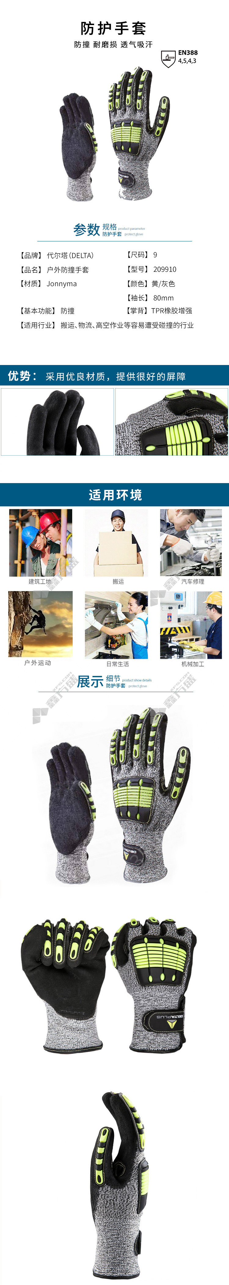 delta outdoor anti-collision gloves 209910 209910 no specifications