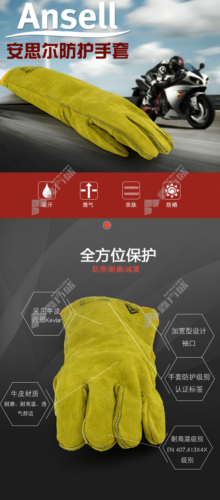 ansell welding gloves 1 pair 43216100 10# no specifications