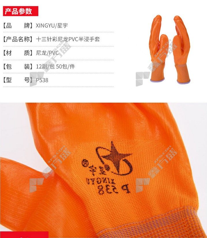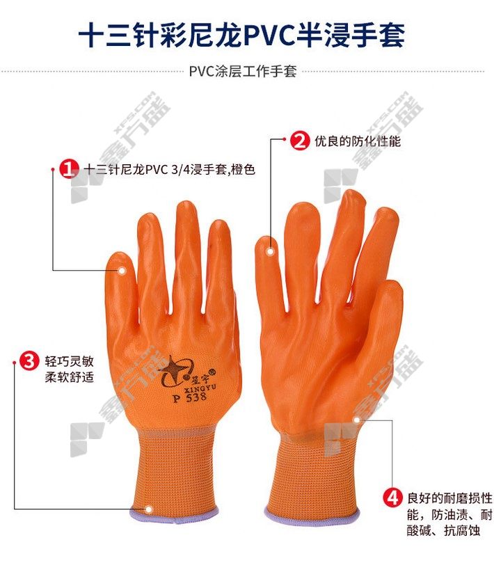 xingyu XINGYU 13 needle color finger reinforcement PU gloves PU538 one size orange no specifications