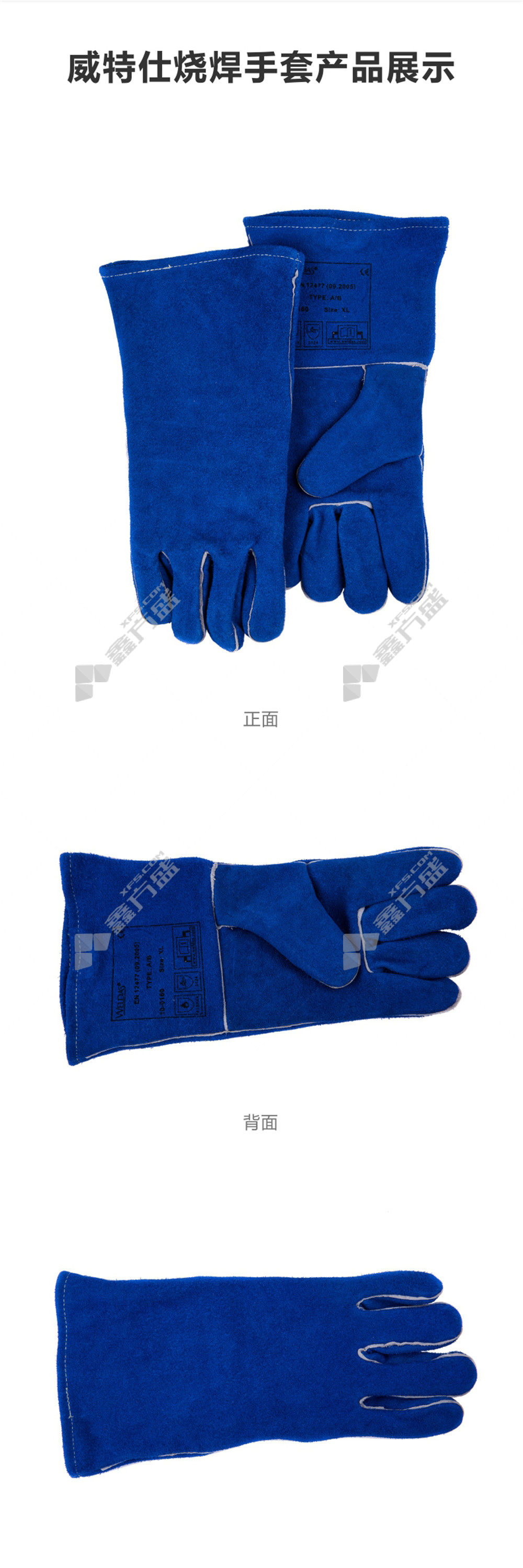 wits fireproof and wear-resistant conventional welding gloves 10-0160 oblique thumb style XL colorful blue 10-0160 /L/colorful blue