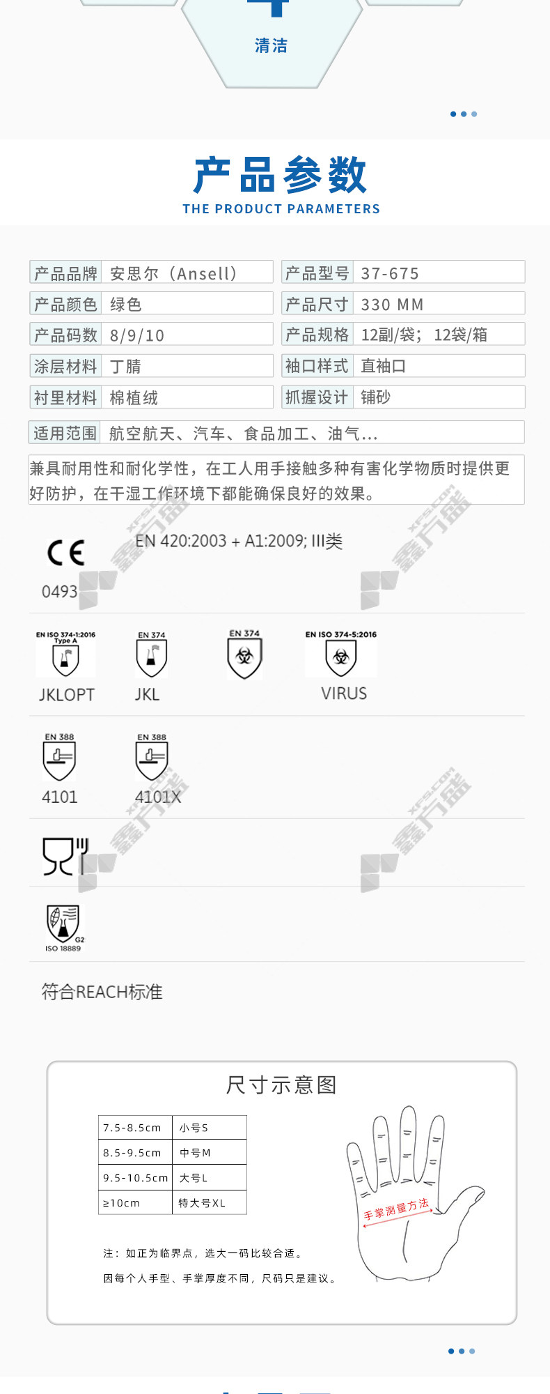 ansell 37-675 nitrile sand pattern green chemical resistant gloves 37-675 11 size no specifications