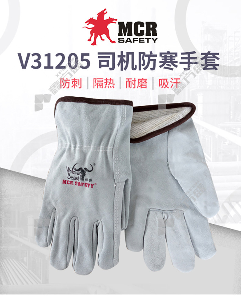 welding beast V31205 driver gloves 25 CM cow two-layer primary color neck hide no specifications