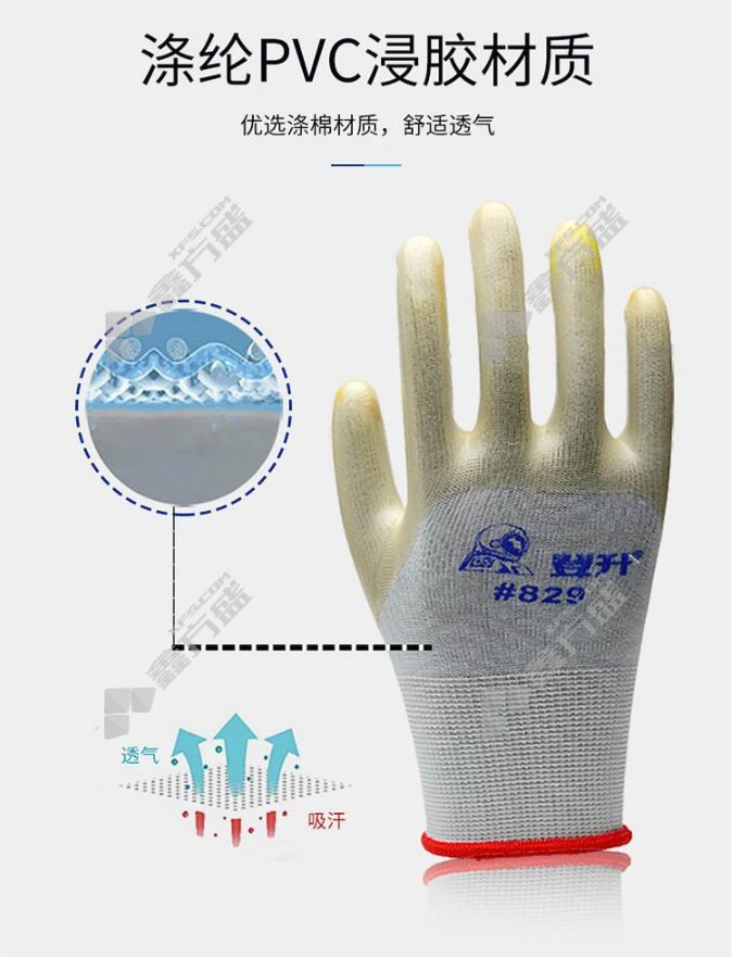 densheng 13-needle polyester 3 /4dip glue PVC coated gloves #829 no. 9 white gauze custard glue no specification