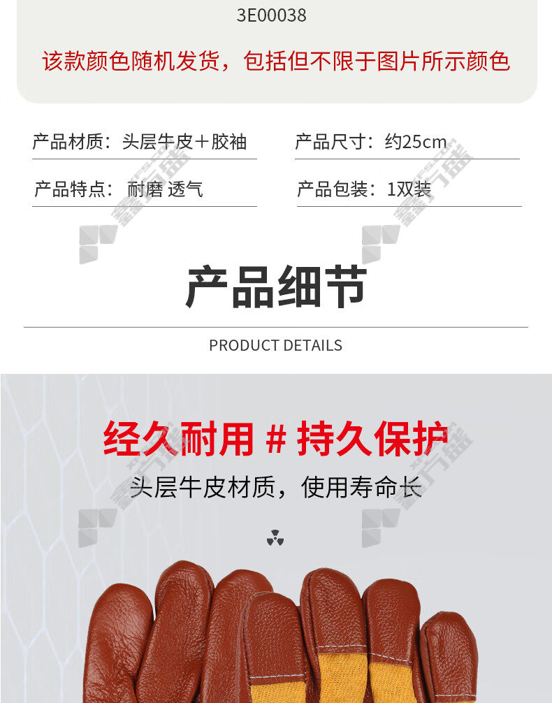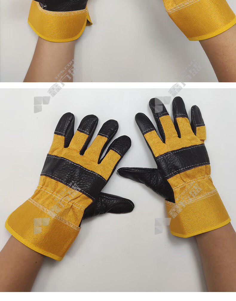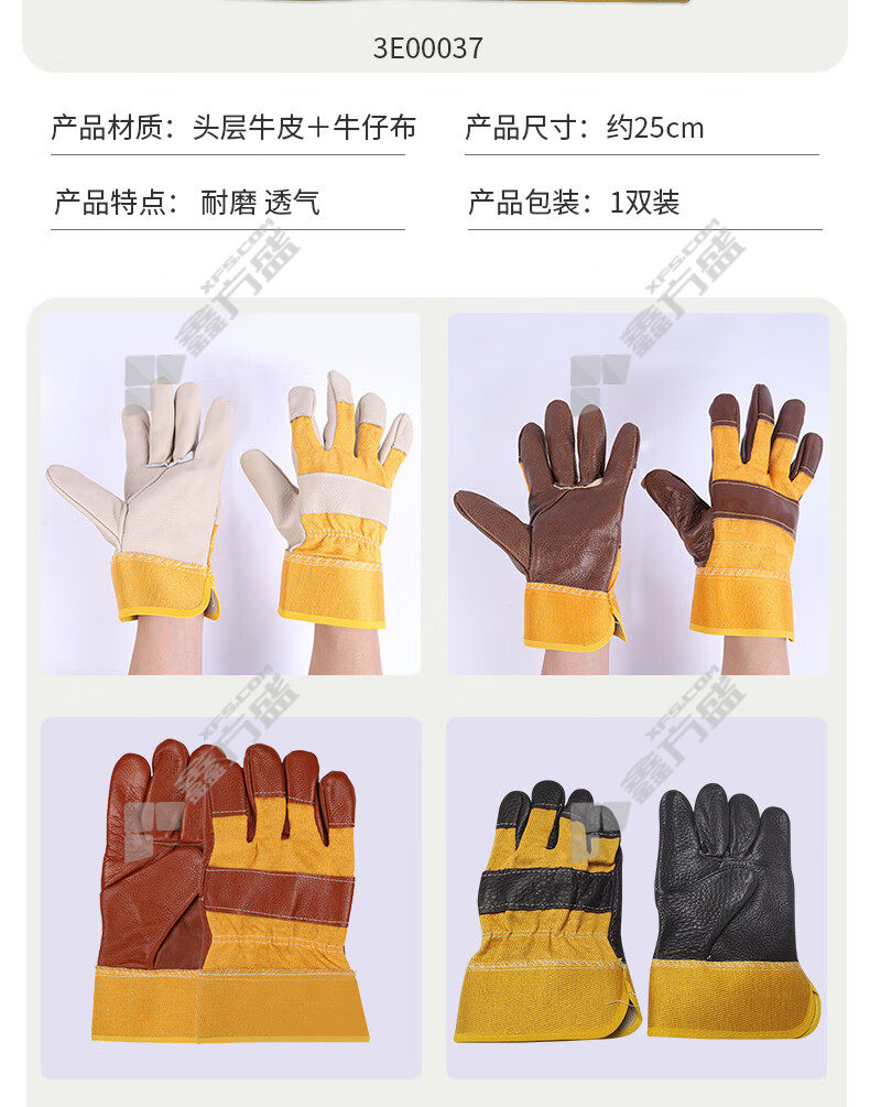 ansery 3 E00037 short top layer cowhide welding gloves 3 E00037 about 25 cm yellow mixed with rice and white, no specifications