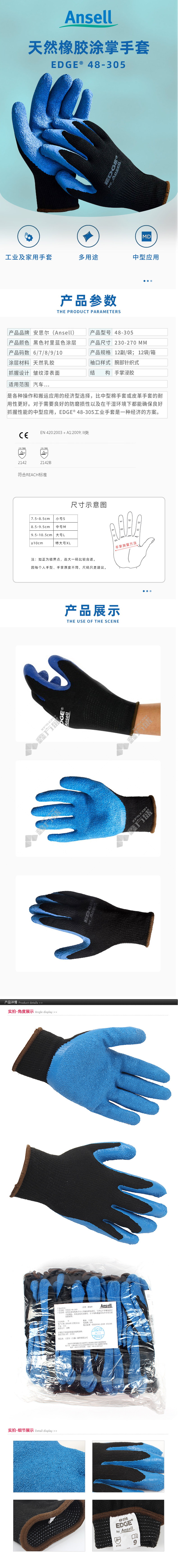 ansell PowerFlex natural rubber coated gloves 80-100 size 9 black blue no specifications