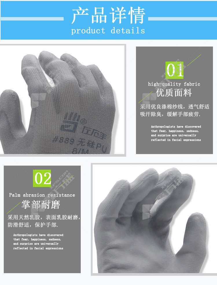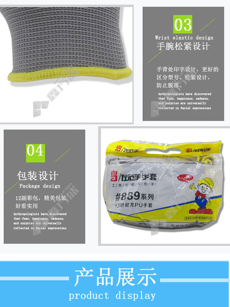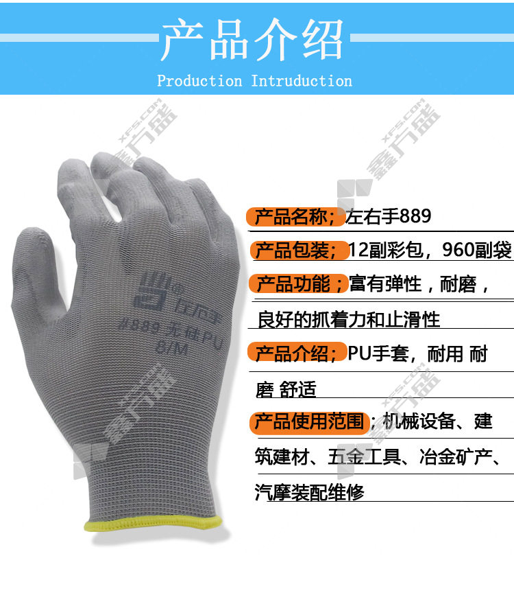 left and right hand 889 nylon PU anti-static gloves #889 9code /L 21cm black #889 /7code /S/21cm/white