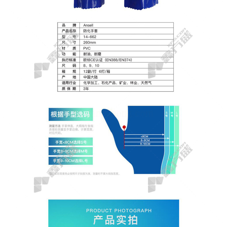 ansell 14-662 chemical resistant gloves 14-662 9code blue PVC 14-662/9code /blue /PVC