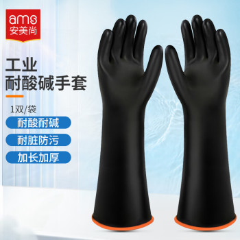 ameishang acid and alkali resistant thickened rubber industrial gloves A5392 45CM black A5392/45CM/black