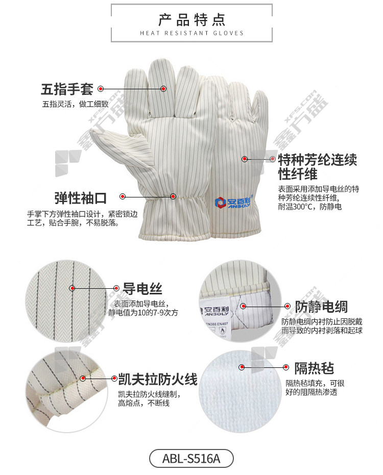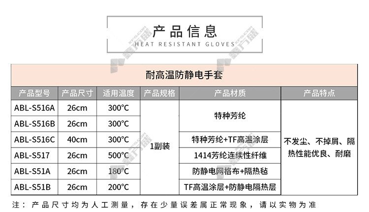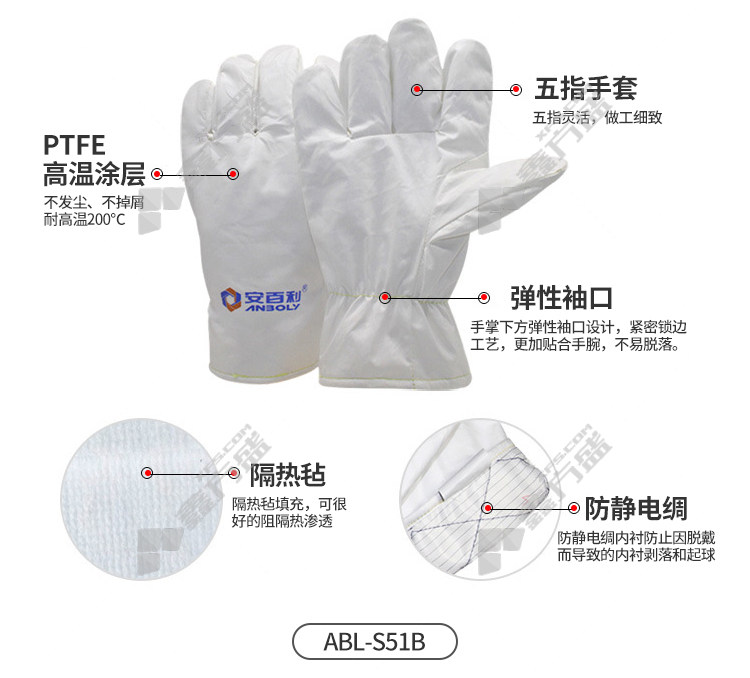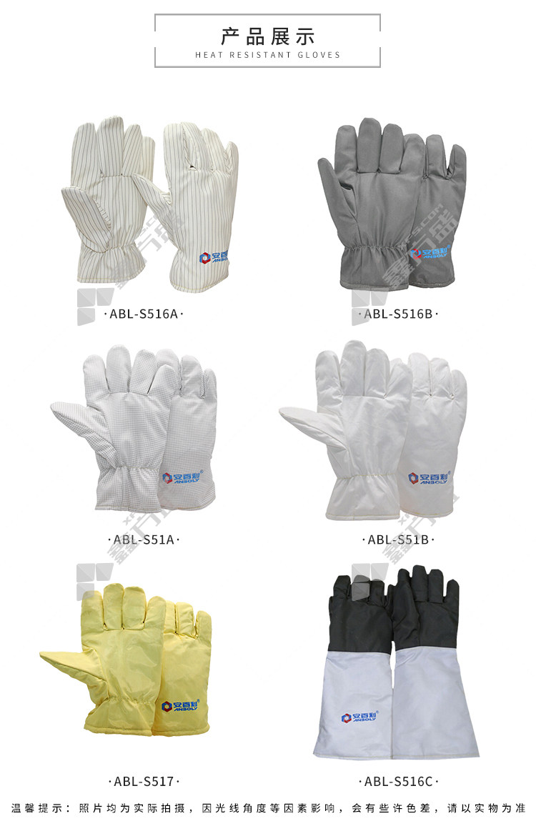 amberly 200 degree dust-free high temperature resistant gloves 26 cm ABL-S51B no specifications