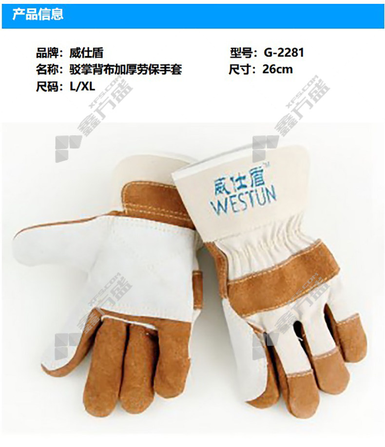 wei shi shield palm back cloth thickened labor protection gloves G-2281 26cm XL white brown G-2281 26cm/L/white brown