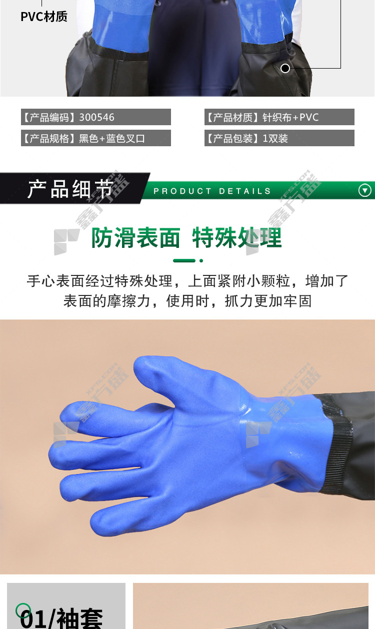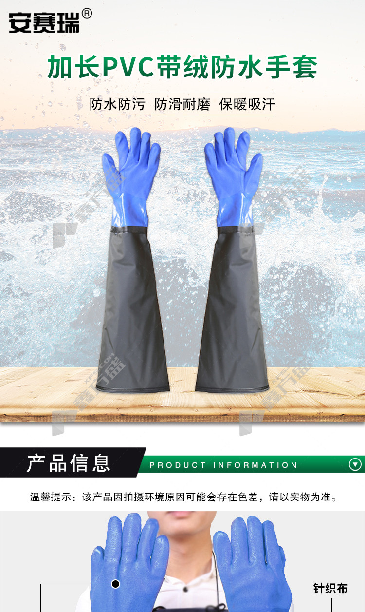 ansery 300546 extended PVC velvet waterproof gloves 300546 black blue no specifications