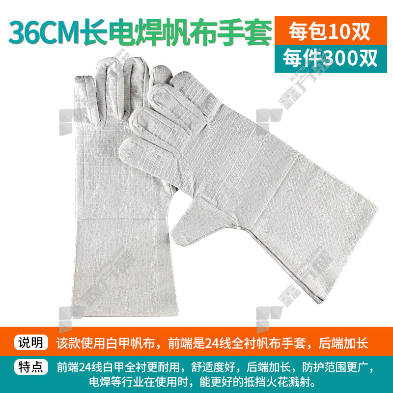 line element 36 cm extended 24-line white canvas gloves, white 24-line, no specifications