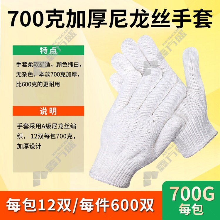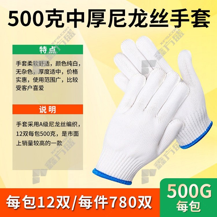 thread element pure nylon silk A grade medium thick cord gloves 700 g white blue edge 500 g/white blue edge