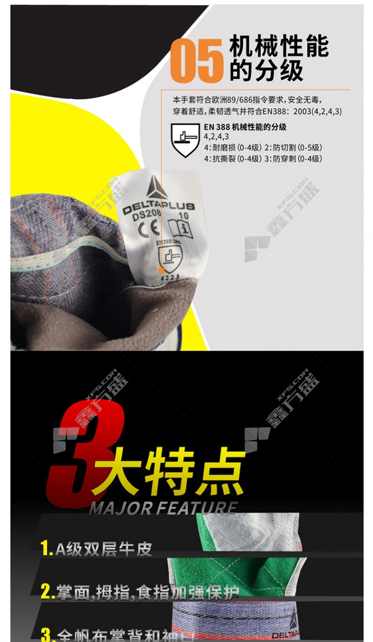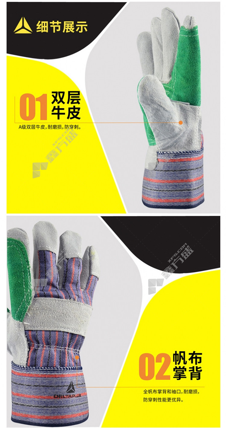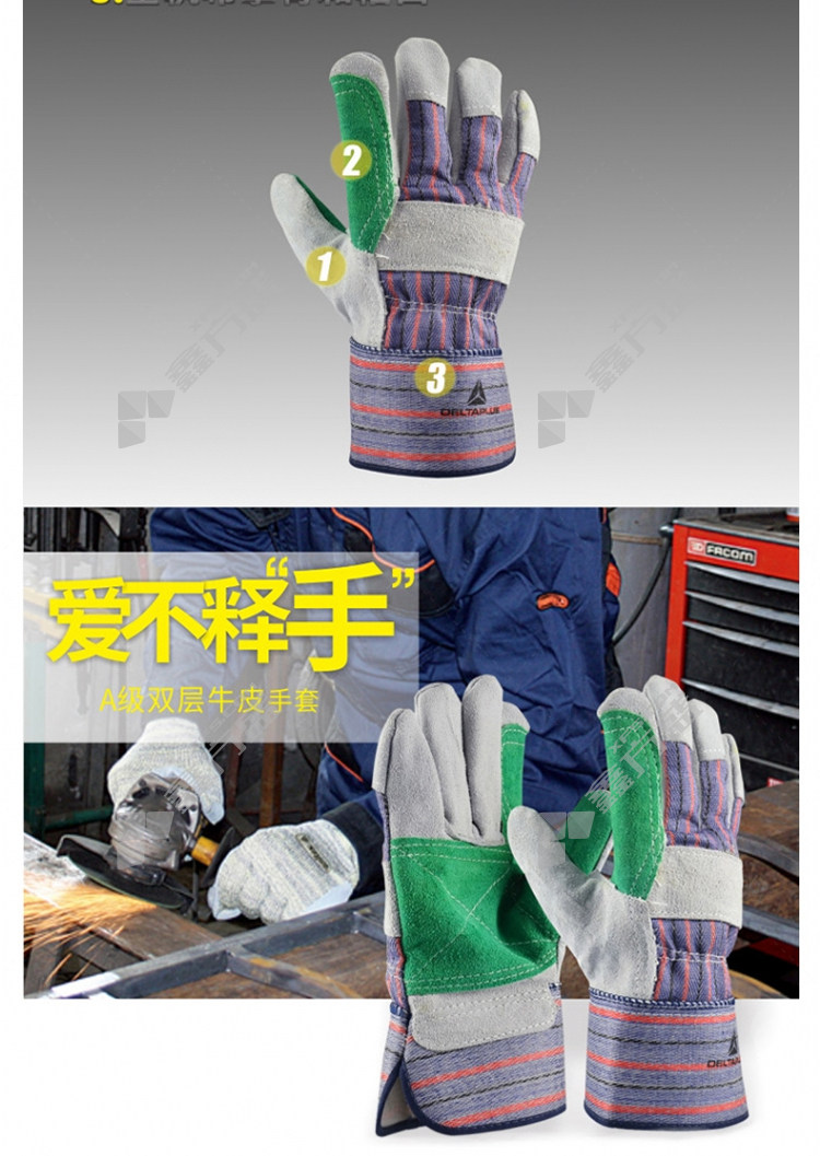 delta A grade double layer cowhide gloves 204208 10 yards gray green no specifications