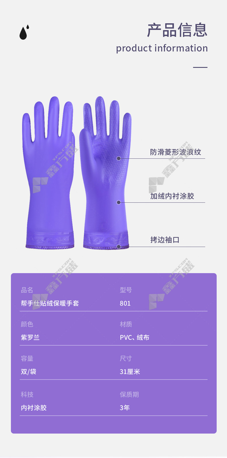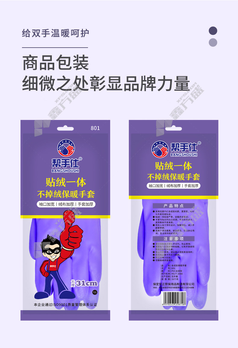 bangshoushi 801 short-sleeved velvet gloves 801 31 cm purple no specification