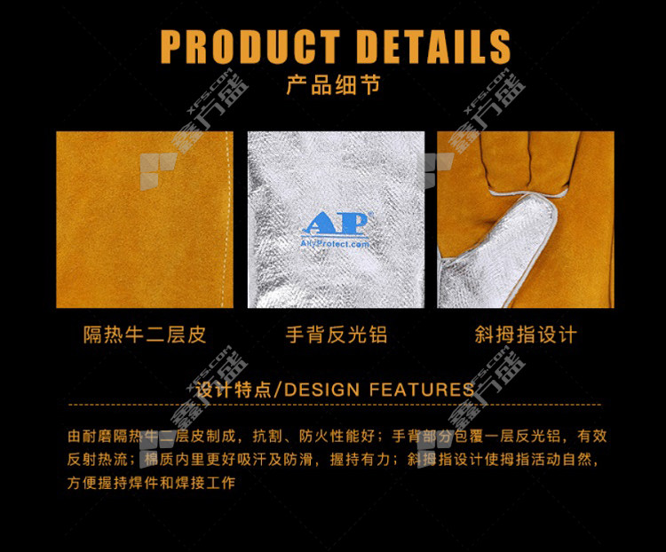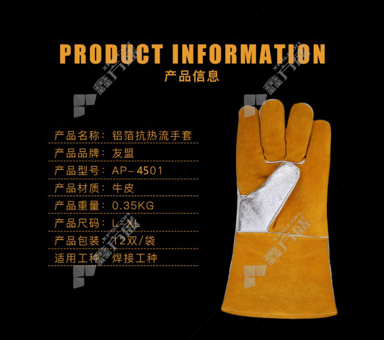 umeng aluminum foil anti-heat flow gloves XXL AP-4501 M/AP-4501