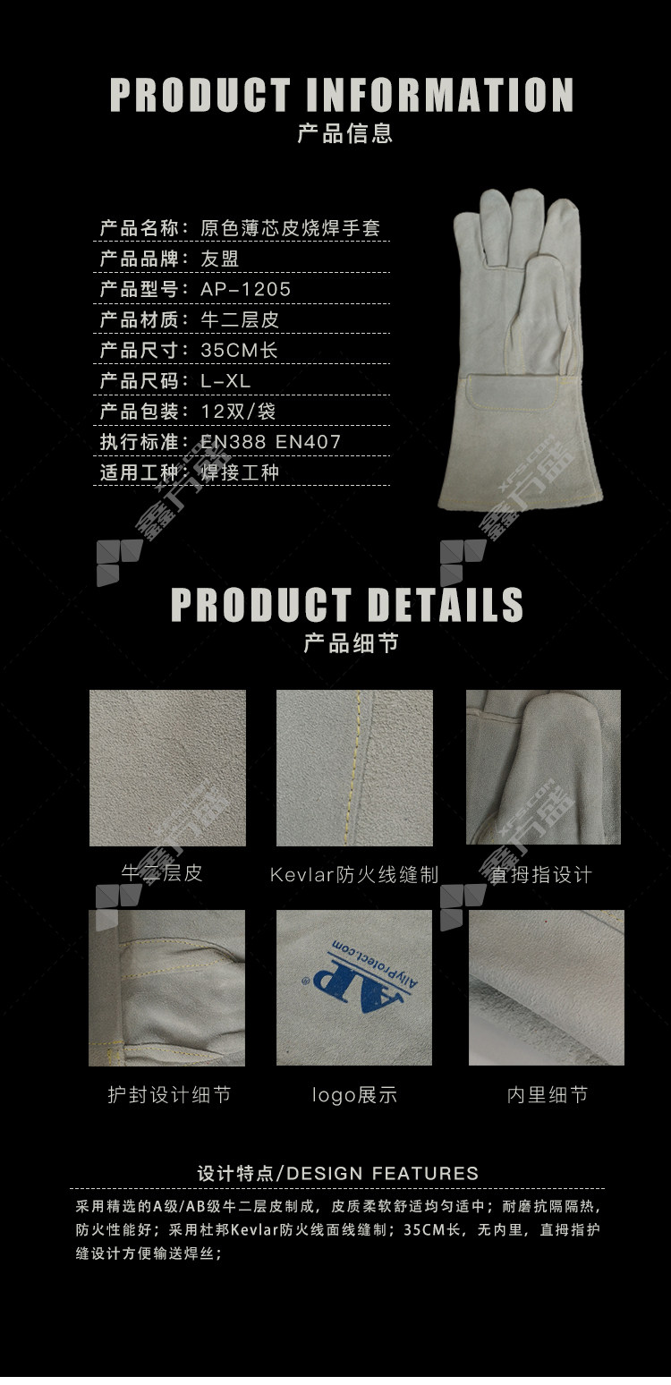umeng thin core leather welding gloves L primary color AP-1205 M/primary color /AP-1205