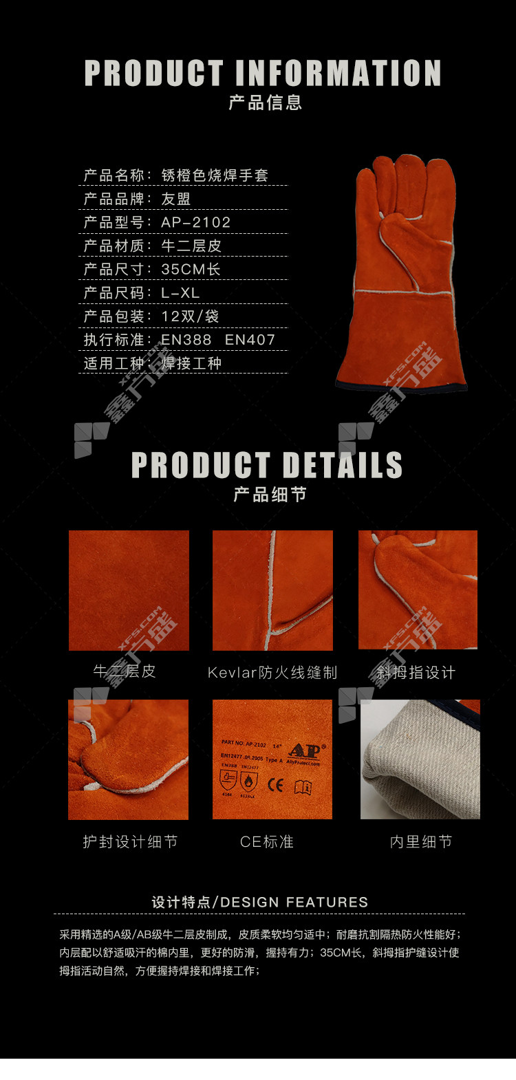 umeng AP2102 welding gloves XL rust orange AP-2102 M/rust orange /AP-2102